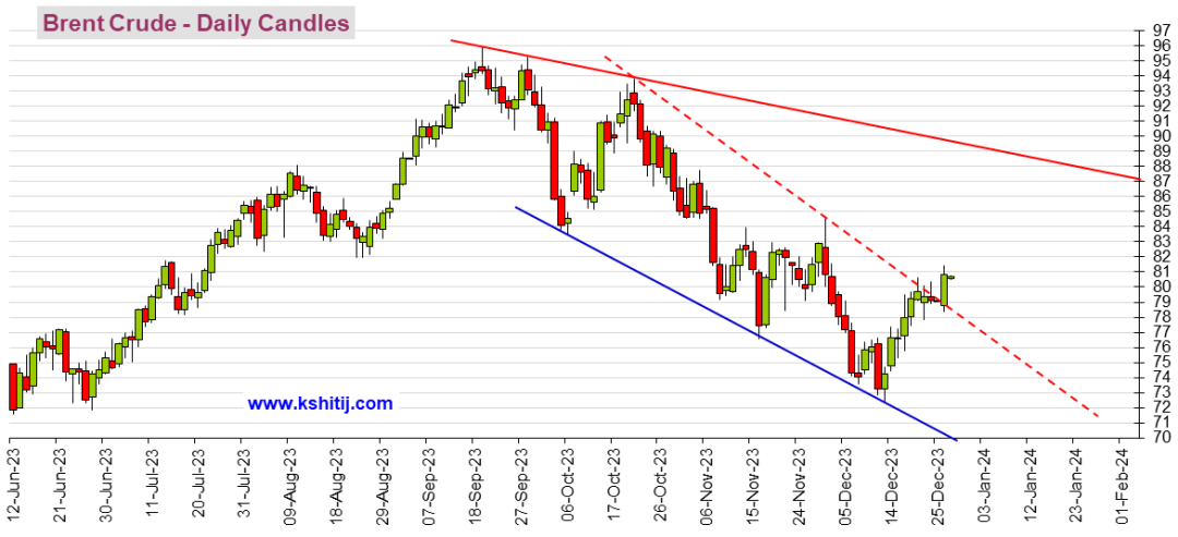 原油期货布伦特原油期货已回落至80美元/桶以下。不过,只要高于支撑位78美元/桶,那么布油价格仍有可能涨向84-85美元/桶。